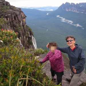 ・エンジェルフォール滝上に立つ(ベネズエラ)