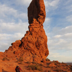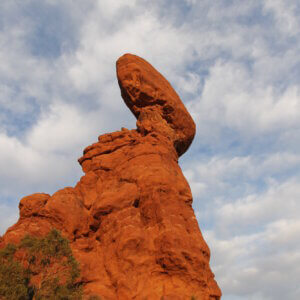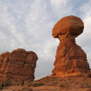 最初からアーチではなくて恐縮ですがこの国立公園に入ってまず目にすることが多いのがこのバランスロック。周りを一周すると今にも崩れそうな角度に見えます。あまりにも周りのサイズが大きいのでピンときませんが上に載っている岩のサイズはバス三台分と言われます。