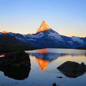 オレンジ⾊の光を放ち、⽬を覚ますスイスのマッターホルン。今もその光景が⽬に焼き付いて離れない。