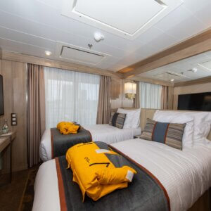 クルーズ船はトリプル利用の3名様グループの場合、1名様は1人部屋(有料)となります