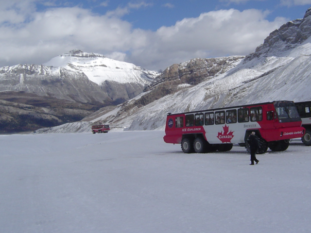 | 2日目 | (08:00発)バンフ・ホテル =《専用車》= ボウレイク観光&ペイトレイク観光 =《専用車》= コロンビア大氷原観光 =《専用車》= レイクルイーズ・ホテル(18:30着) 午前 ◎コバルトブルーに輝き周辺の山を映すボウレイク湖とペイトレイク湖で観光 午後 ◎コロンビア大氷原のアサバスカ氷河で雪上車に乗って絶景観光(2時間)。 コロンビア氷河は東京都の半分という巨大サイズ。その流れ出た一部の アサバスカ氷河も長さ6km、幅1km、厚さ300mというサイズです。 宿泊:バンフ泊 食事:朝〇、昼〇、夕〇 |