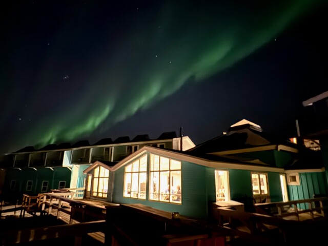 滞在するイルリサットは街の近くに大量の氷山が流れ込むため、氷山の上空に舞うオーロラという夢のような組み合わせの風景を楽しむことが出来ます。