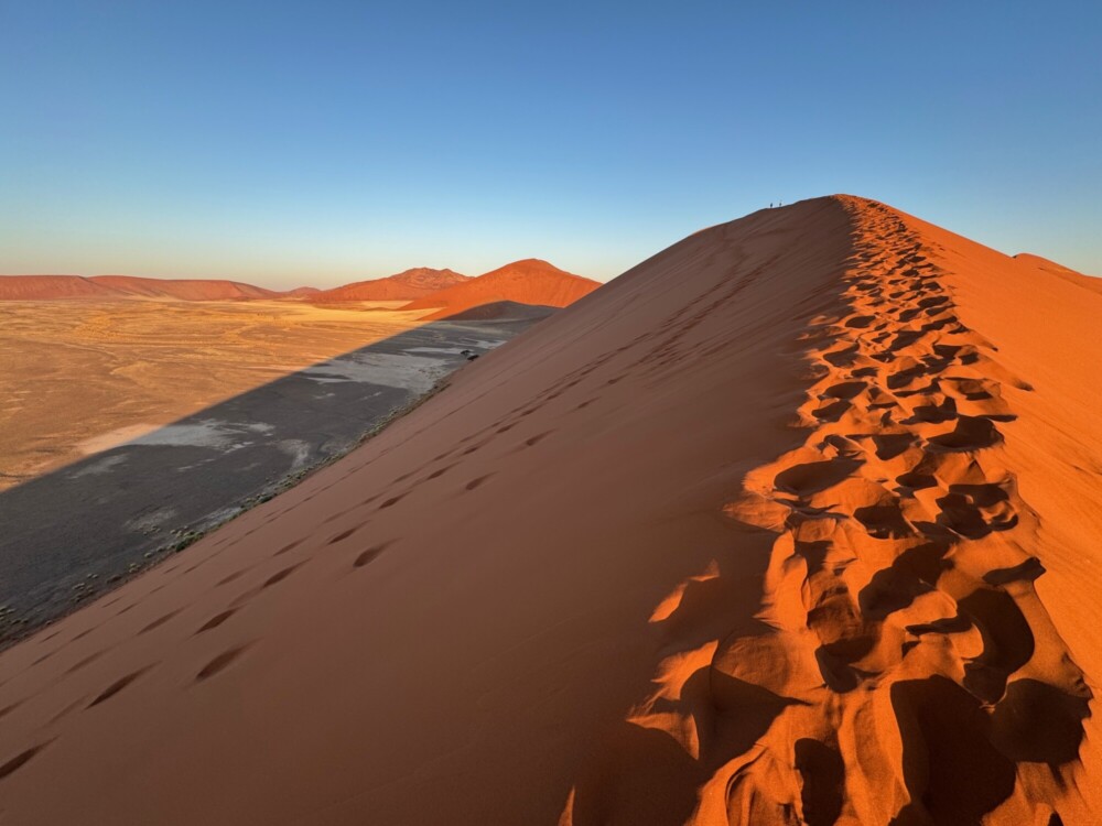 | 6日目 | (03:30)ホテル・・・ヨハネスブルグ空港 (05:55発)→ 《国際線》→ ナミビア・ヴィントフック空港(07:50着) =《専用車》=ソススフレイ(16:00) 夕方 ナミブ砂漠のデューン45を観光(翌日の場合あり) 宿泊は国立公園内のロッジです。 ◎世界三大星空の夜をお楽しみください。 宿泊:ソススフレイ(ロッジ)泊 食事:昼〇、夕〇 |