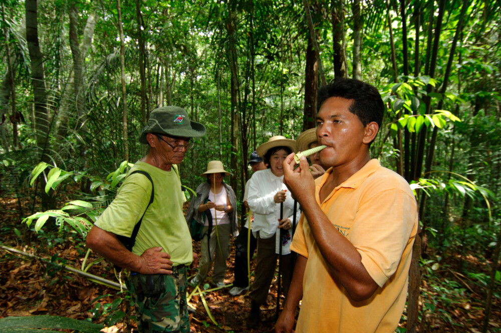 レンソイスの白い乾いた風景からアマゾンへ移ると、空気ががらりと変わります。まず肌に触れる湿度が違う。風がしっとり重くて、土の匂い、水の匂い、葉の青い匂いが混ざった空気がすっと入ってきます。日本の夏の森にも湿度はありますが、アマゾンの湿り気はもっと濃くて、もっと奥行きがあります。こちらが空気を吸っているというより、森の呼吸の中に入っていくような感じでした。