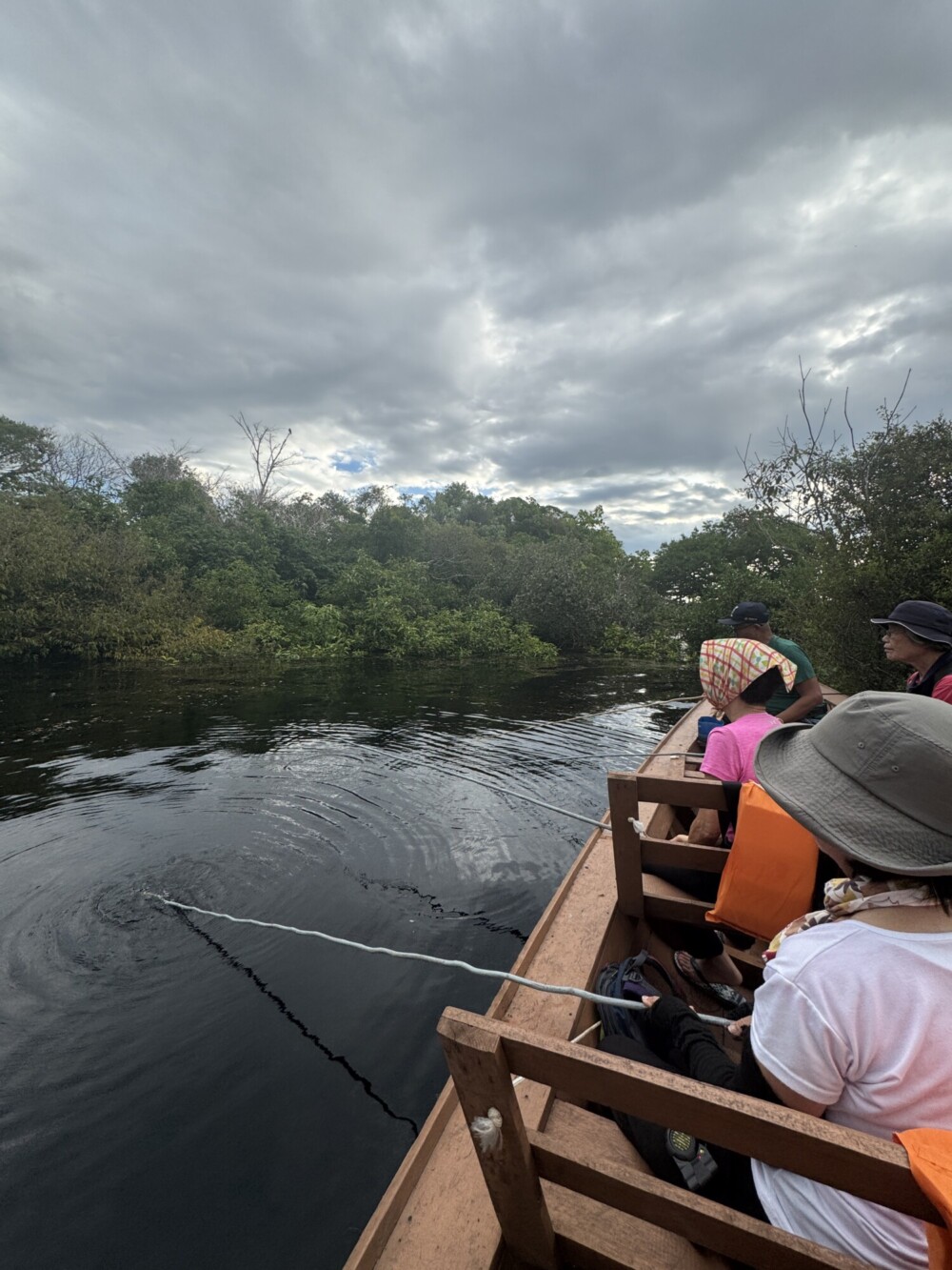 アマゾンというと、子どもの頃に図鑑やテレビで見た「大河」「ジャングル」「秘境」といった言葉を思い浮かべる方が多いと思います。私もそうでした。でも実際にその場へ行ってみると、あのイメージが急に現実の重みを持ち始めるんです。川はとにかく広くて、場所によっては海みたいに見える。ボートがざぶん、ざぶんと水を割って進み、遠くから鳥の声がして、耳のそばでは虫の気配が続いている。にぎやかなはずなのに、なぜか自分の気持ちは静かになっていく。アマゾンには、そういう不思議な落ち着きがありました。