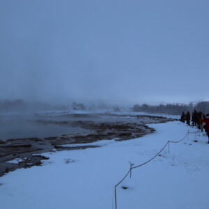 オーロラ観察といえば極寒の中何時間も待つというイメージがある方もいらっしゃるかもしれませんが、アイスランドは冬でも平均気温0度前後なので極寒というほどではありません。私は自他ともに認める寒がりですが、そんな私でもしっかり着込めばそこまで寒いと感じませんでした。しかも弊社ツアーは間欠泉が見れる場所まで徒歩5分の場所にあるホテルに宿泊しますのでオーロラ観察のハードルは低めといえるのではないでしょうか。
