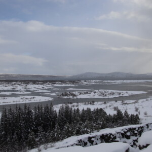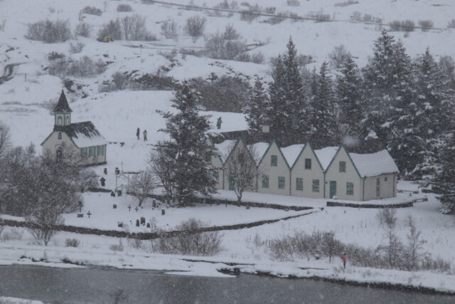 そして世界的にも有名な地球の割れ目ギャウもあります。地球上で2か所しかない海嶺が地上に乗り出している場所(もう1か所はアフリカ大陸)であり、そのため地球の割れ目と呼ばれています。西側に北アメリカプレート、東側にユーラシアプレートがありその間を歩くことになるのですが、最初は自分の歩いている場所が割れ目の1つだとは思わないかもしれません。私も実際に歩いてみて本当に今割れ目を歩いているのかと疑いたくなりました(笑)。それくらい大きな割れ目になっています。今でも年に2,3センチずつ広がっているそうです。そして勘違いしがちなポイントとして挙げられるのが、ギャウは1つではないということ。実際に歩く場所ももちろん大きなギャウの1つなのですが、展望台に行くと小さなギャウがたくさんあることが目で見てわかります。さらに展望台からはアイスランド首相のサマーハウスや教会、夏に潜って底の亀裂を見ることができるシンクヴァトラヴァトン湖が見えます。