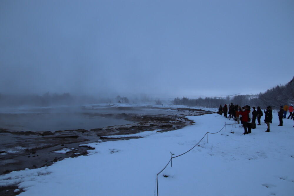 オーロラ観察といえば極寒の中何時間も待つというイメージがある方もいらっしゃるかもしれませんが、アイスランドは冬でも平均気温0度前後なので極寒というほどではありません。私は自他ともに認める寒がりですが、そんな私でもしっかり着込めばそこまで寒いと感じませんでした。しかも弊社ツアーは間欠泉が見れる場所まで徒歩5分の場所にあるホテルに宿泊しますのでオーロラ観察のハードルは低めといえるのではないでしょうか。