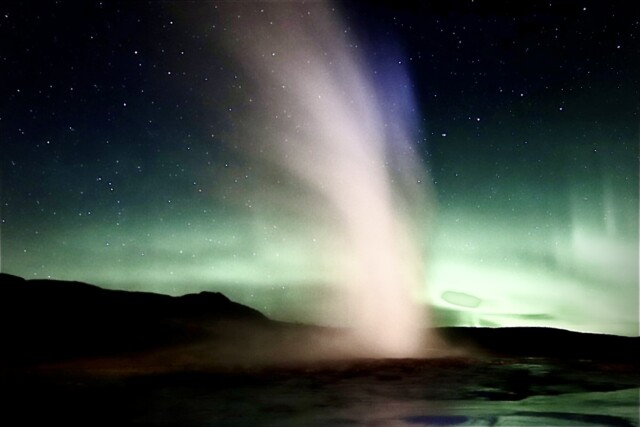 アイスランド ストロックルとオーロラ
